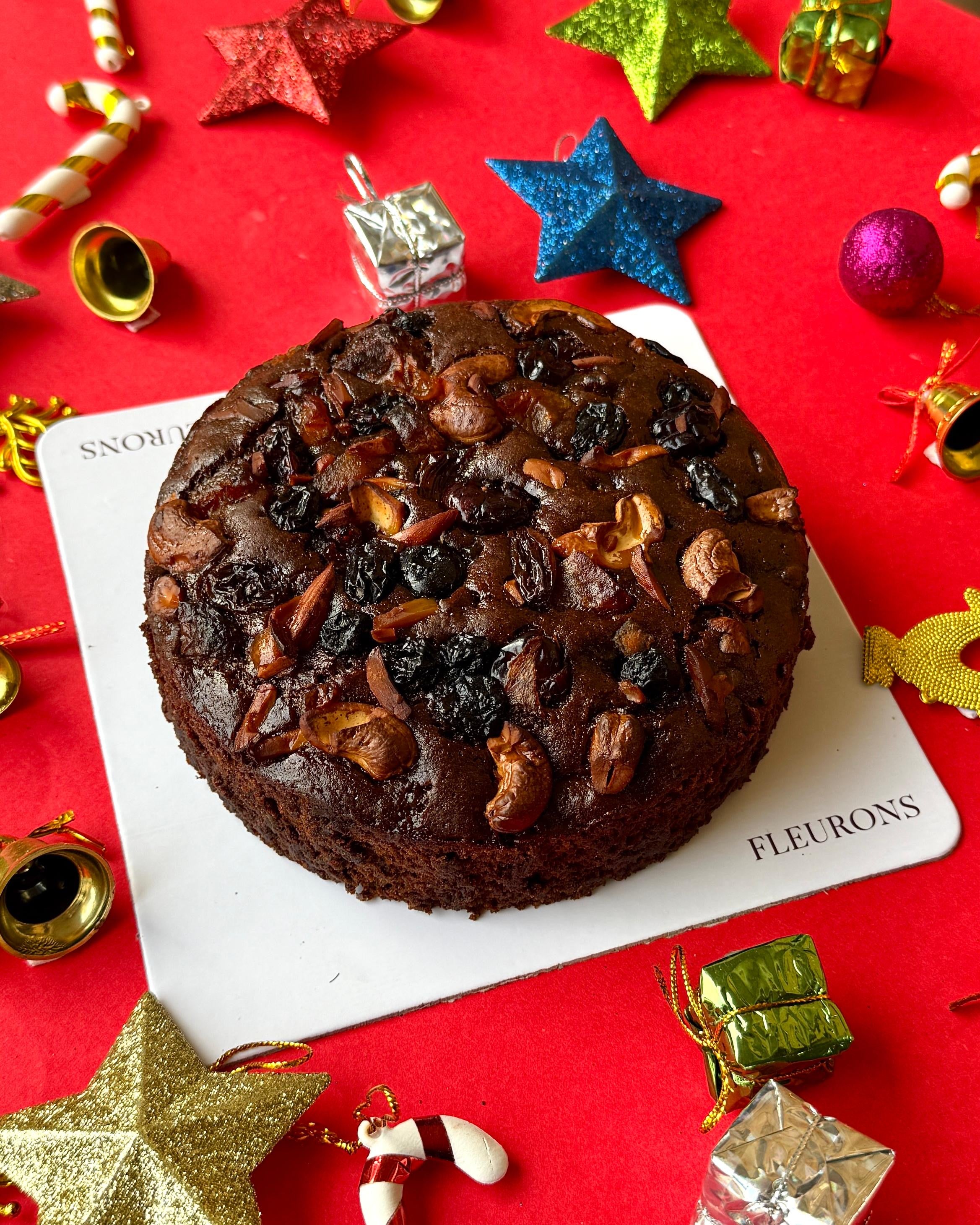 Dried cranberries, blueberries, prunes, black & golden raisins, apricots, candied ginger, candied orange, cashews, & almonds soaked in Orange & cranberry juice, honey and lemon juice, with a secret mix of spices, this eggless plum cake is what Christmasy Dreams are made of!